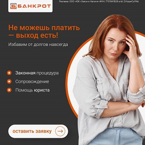 Юридическая компания с 15-летним опытом в списании долгов. Работаем официально, по договору. Более 19 980 выигранных дел, более 350 млн рублей списанных долгов, 1800 + консультаций ежемесячно, 500 + отзывов от довольных клиентов. Берем под ключ все процедуры, от консультации до решения суда. Требования: Граждане РФ до 60 лет. Общая сумма долгов от 300 000 руб. Нет действующего статуса банкрота. Подходит официально и неофициально работающим. Имеют долги по кредитам, займам, ЖКХ и т.п. Рекламодатель: ООО ЮК "Закон и Налоги" ИНН: 7701841928 |