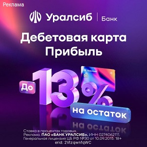 Описание условий: Бесплатное обслуживание. 14% годовых на ежедневный остаток. Кэшбэк 1% за все покупки и до 30% за покупки у партнеров. Снятие любой суммы бесплатно в любом банкомате Уралсиба или наших партнеров: ВТБ, Альфа-банка, Банка Открытие, Райффайзенбанка и Росбанка. В банкоматах партнёров без комиссии до 300 000 руб. Получение неименной карты в день обращения.