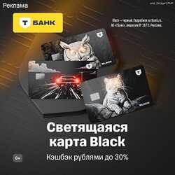 Описание условий: Обслуживание от 0 рублей. До 5% годовых на остаток по счету. Кэшбэк 15% в четырех выбранных категориях. Кэшбэк до 30% по спецпредложениям. 1% за любые покупки. Снятие наличных во всех банкоматах 0 рублей. Бесплатные переводы на карты других банков. Требования: Возраст: от 14 лет. Гражданство РФ. Способы получения: Доставка курьером - бесплатно. Рекламодатель: АО "ТБанк" ИНН: 7710140679 | |