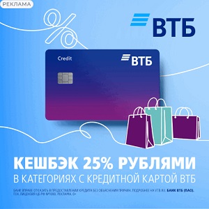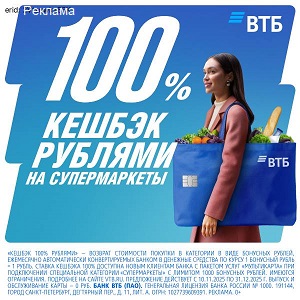 Акция: до 28.12.2025 кэшбэк рублями в супермаркетах 100%. Оформите бесплатную дебетовую карту ВТБ. Получайте повышенный кэшбэк 100% рублями на супермаркеты. Лимит 1000 руб. Только для новых клиентов!