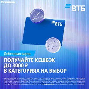 Акция: Только для новых клиентов! Заправки - Скидка 10% на топливо (максимум 300л) при оплате картой ВТБ до 30.11.25. Описание условий: Обслуживание и выпуск бесплатно. Переводы по номеру телефона в другие банки бесплатны. Оплата ЖКХ, штрафов, интернета, сотовой связи без комиссии. Зарплата, пенсия и пособия зачисляются прямо на карту. Возможность оформления платёжного стикера. Программа «Приведи друга» позволяет получить 1000 рублей за рекомендацию карты новому клиенту банка. Преимущества: Кэшбэк рублями до 50% от партнеров банка, до 25% в категориях на выбор, 3% за покупки - супермаркеты, 2% на все покупки. Доход по накопительному счёту до 16%. Получи 1000 руб. за рекомендацию карты новому клиенту банка. Требования: Гражданство РФ. Возраст с 14 лет - оформление в отделении банка, с 18 лет - оформление онлайн. Способы получения: В отделении банка. Доставка курьером - бесплатно. Услуги оказывает: ПАО "ВТБ" Генеральная лицензия Банка России №1000 ИНН: 7702070139 | |
