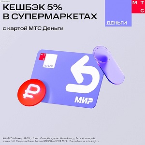 Описание условий: Выпуск, обслуживание, платежи, переводы бесплатно. Карта для всего. МТС Premium - подписка в подарок на 2 месяца. Преимущества: Кэшбэк 5% за покупки в супермаркетах с подпиской МТС Premium, 15% кэшбэк за покупки на маркетплейсах, до 30% за оплату связи МТС. Требования: Гражданство РФ. Возраст от 18 лет. Способы получения: В отделении банка. Доставка курьером - бесплатно. Услуги оказывает: АО "ЭКСПОРТНО-ИМПОРТНЫЙ БАНК" ИНН: 7831000940 | |